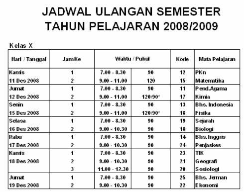 Info Sekolah Pekan Ulangan Semester 1 Tahun 2008-2009 Tanggal : 15/12/2012 Kembali ke AtasInfo Sekolah Lainnya :Rapat Kerja Tahun 2008Persiapan Pekan Olimpiade sekolah